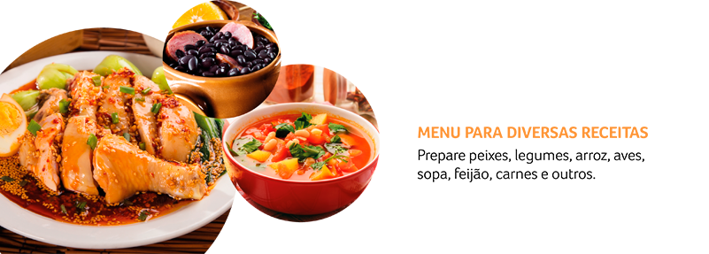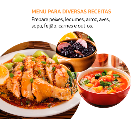 São 4 litros de capacidade e 800W de potência, para cozinhar rapidamente legumes, carnes, frangos ou aquele feijão fresquinho que todo mundo adora!