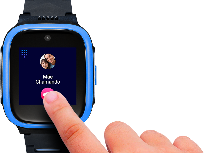 O Kid Watch possui uma Tela Curva HD colorida no tamanho perfeito para crianças, sua Câmera Frontal em alta resolução é excelente para enviar, receber fotos e fazer suas vídeo chamadas.