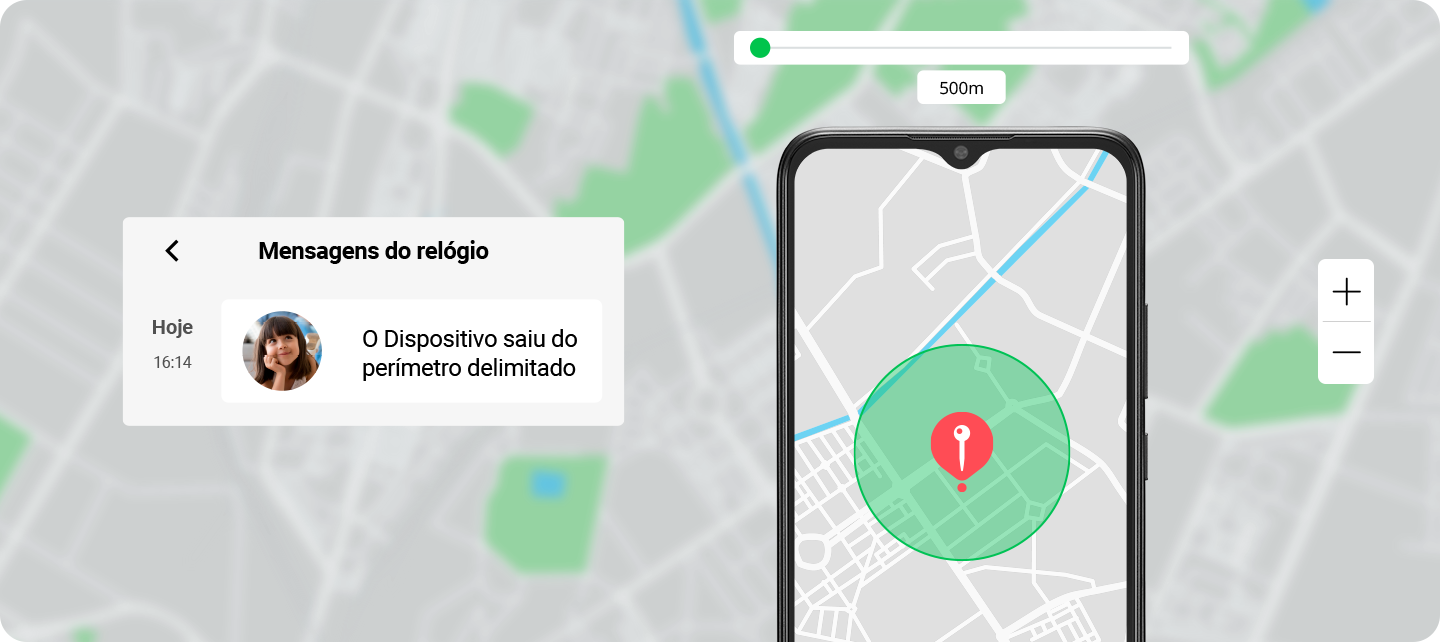 Fique sabendo quando e onde o seu filho está 24h por dia. Usando a função “Perímetro” você consegue definir uma área de até um 1km para que você possa deixar seu pequeno livre para brincar e se sentir livre. Receba notificações no seu smartphone caso ela saia da área delimitada por você.