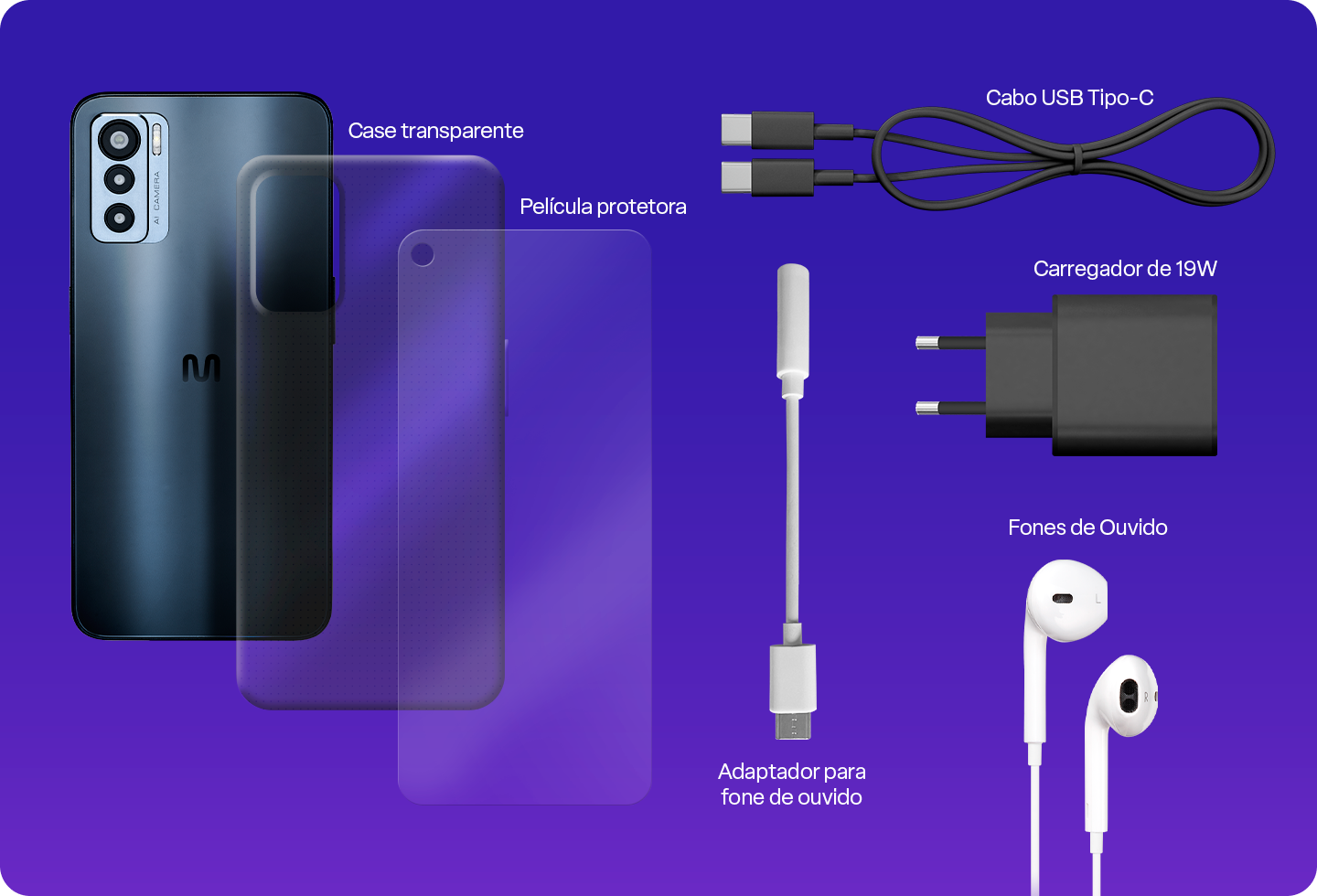 Você está procurando um smartphone que atenda todas as suas necessidades e ainda ofereça acessórios extras? Então você vai adorar o Multi H. O smartphone acompanha: capa, película protetora, carregador e fone de ouvido!