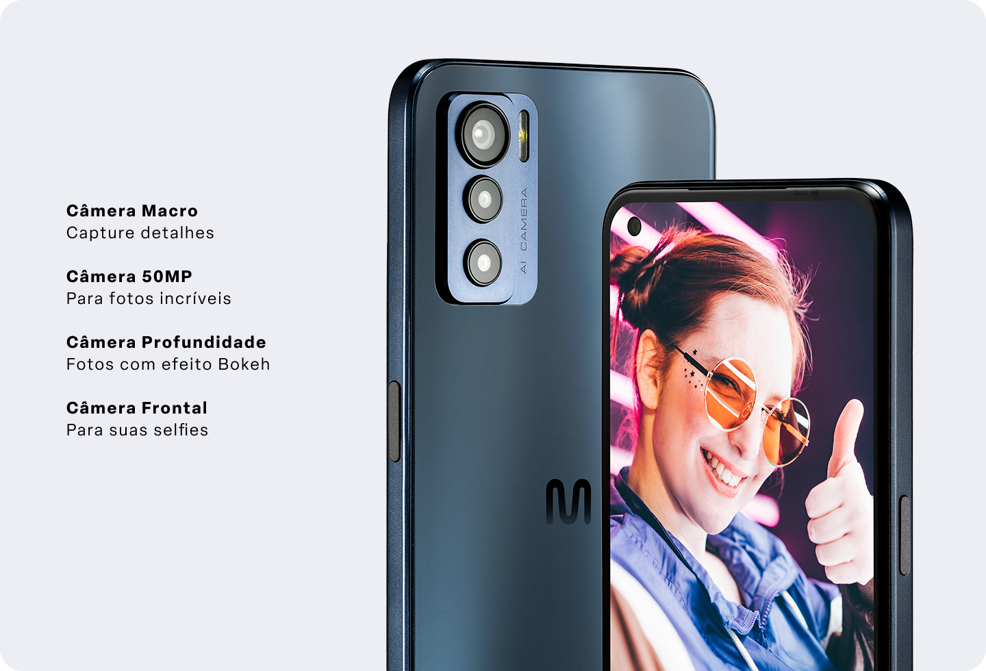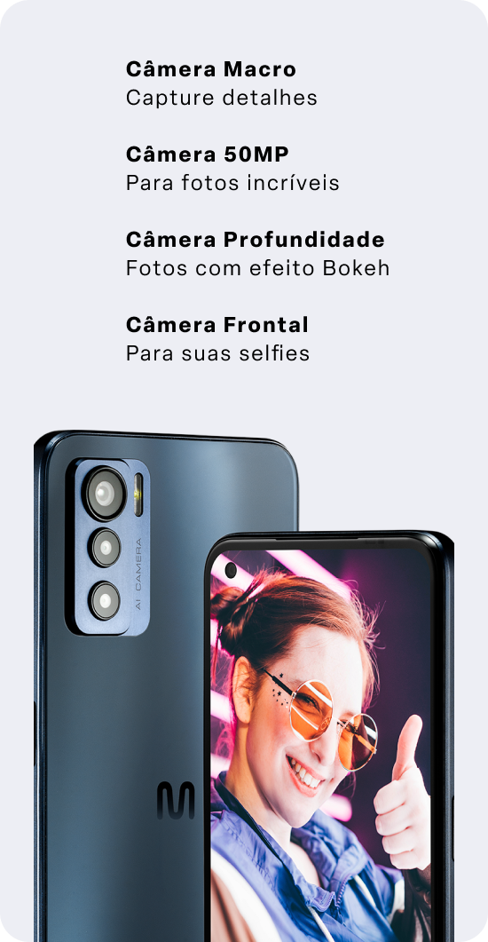 Para quem procura um smartphone com câmera de alta resolução para capturar seus momentos mais incríveis, a câmera tripla de 50MP, do Multi H 5G é a opção perfeita para você não perder mais nenhum detalhe de suas fotos.