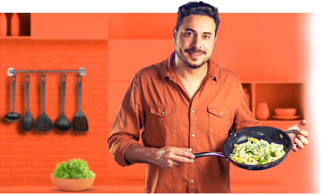 Com a Pro Bem, você tem a frigideira perfeita, mas te faltam ideias para receitas incríveis, práticas, deliciosas e saudáveis? Faltavam! A sua Pro Bem vem com o exclusivo E-book Receitas Pro Bem, assinado pelo maravilhoso Chef Gui Poulain, totalmente GRÁTIS. Para você ter à sua disposição um cardápio vasto e muito saboroso para cozinhar com muita praticidade na sua companheira na cozinha: a Frigideira Pro Bem.
