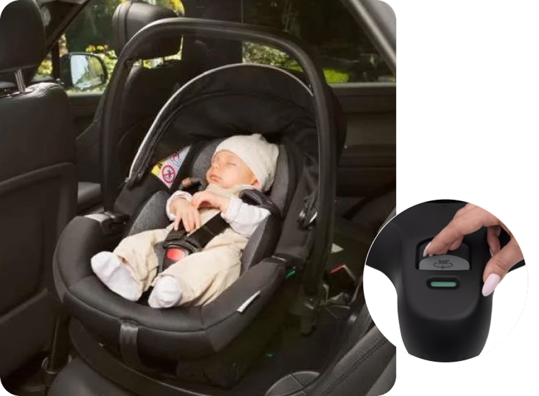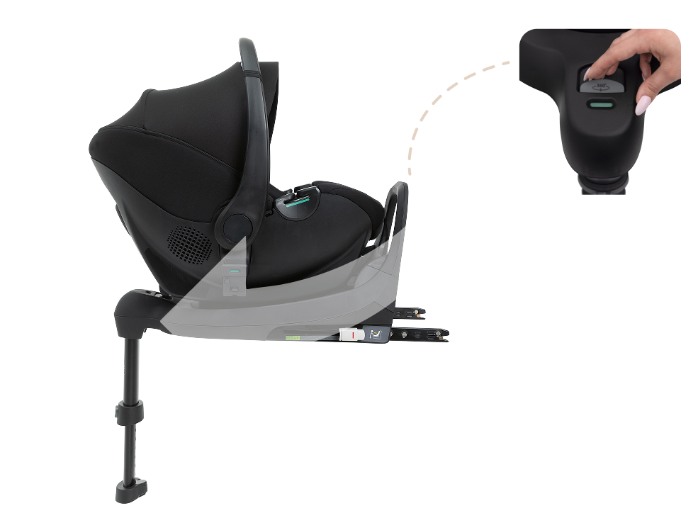 Permite que o bebê conforto gire em 90° na direção dos pais, facilitando posicionar o bebê com praticidade e conforto.