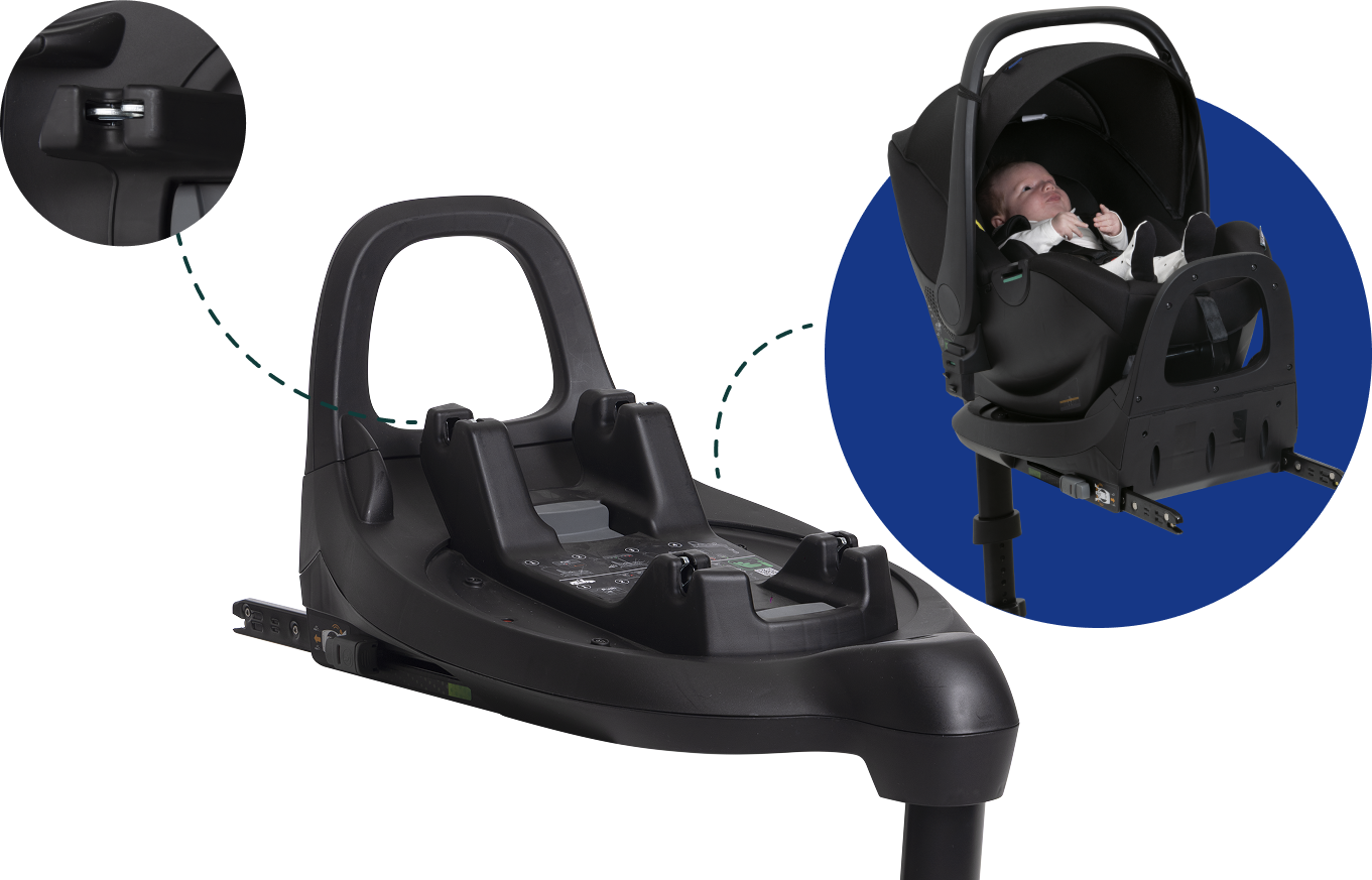 Permite encaixar a cadeirinha de forma fácil e rápida, sem complicações.