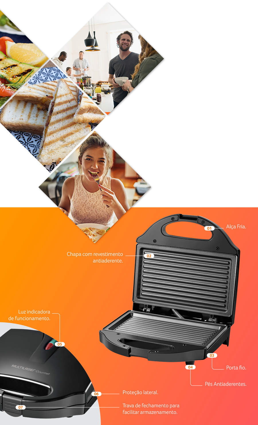 Portátil, prática e super fácil de usar, a Sanduicheira Minigrill da linha Multilaser Gourmet traz um novo jeito de preparar seus alimentos preferidos, de forma simples.