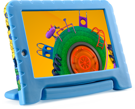 O tablet Discovery Kids Multilaser vem acompanhado de um case emborrachado personalizado com a marca que permite ajustar angulagem para assistir aos conteúdos de forma confortável prática, seja apoiando sobre a mesa, sofá ou até mesmo em cima da cama.