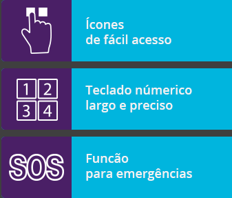 Com ícones de fácil acesso para as principais funções, já na página principal e teclado numérico largo e preciso, o MS45S Sênior conta ainda com função para emergência em casos de situações adversas.
